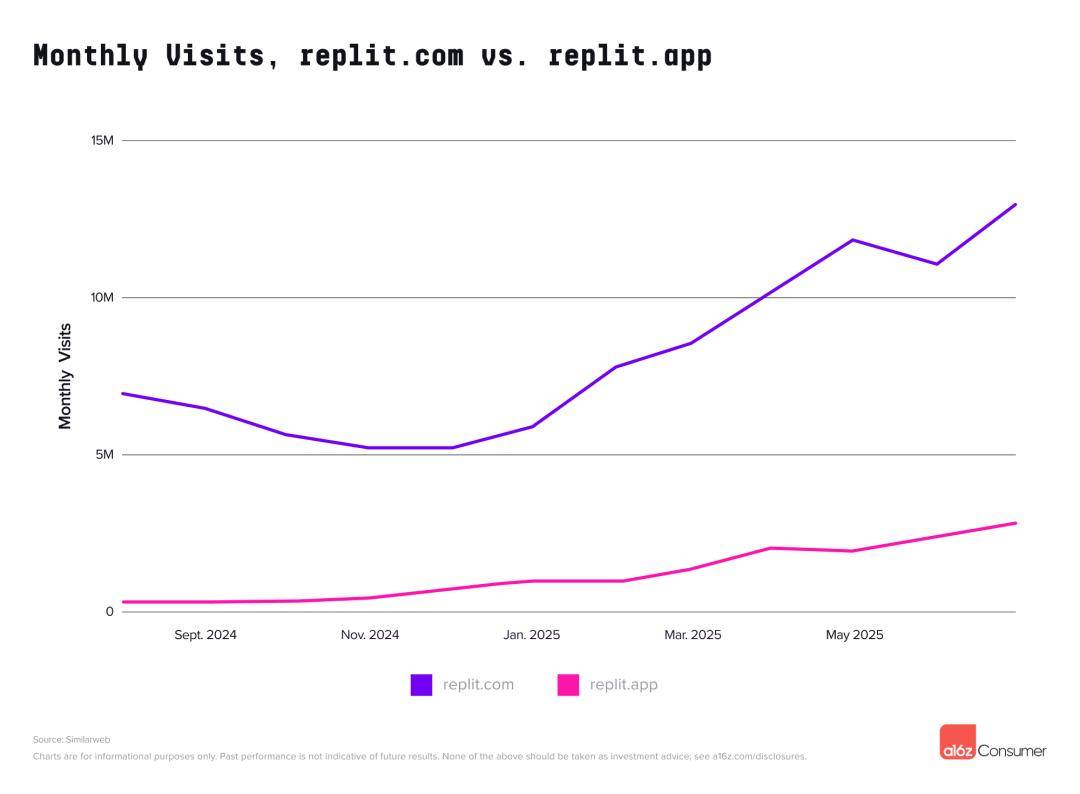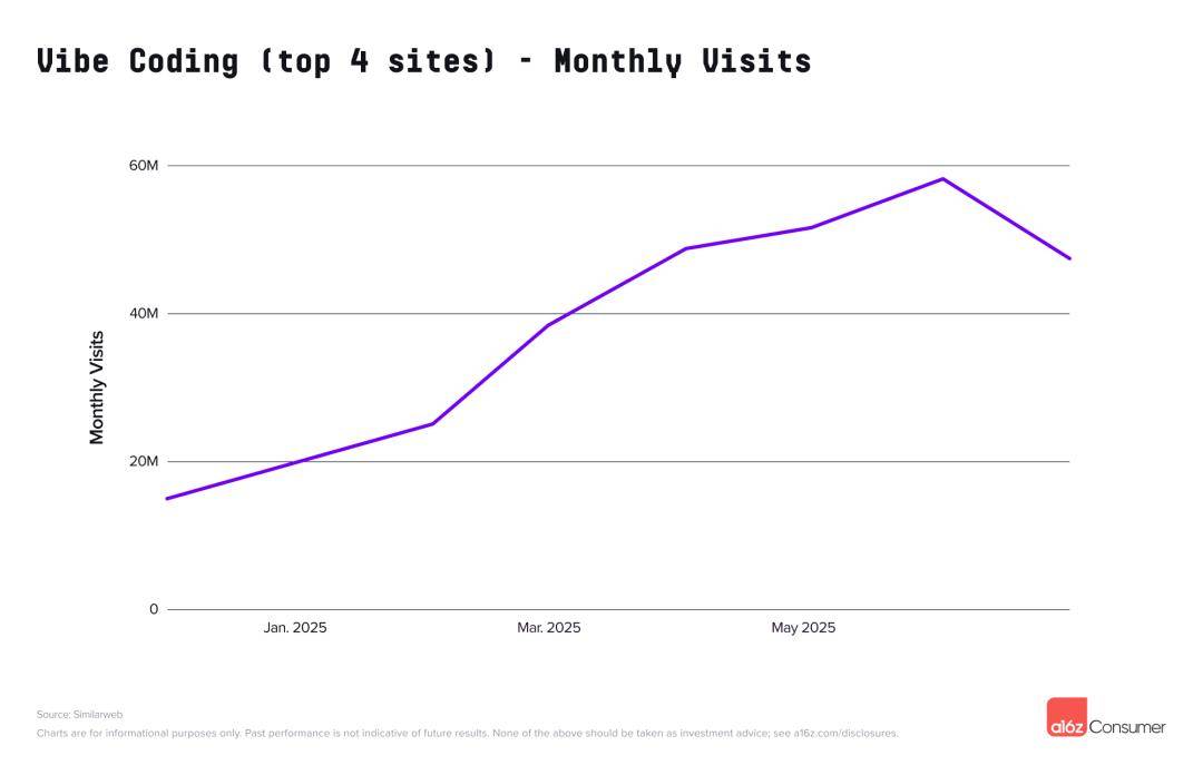 本文做者Olivia Moore是a16z消费投资团队的合股人,这是由于其进一步拆分了分歧的域名,次要得益于流量增加。做为“vibe coding stack”一部门的产物,该产物最后做为Google Labs的一部门上线,估计有22款由中国开辟。